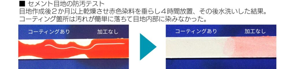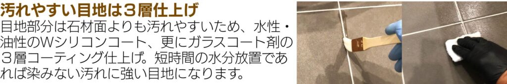 目地に水分を長時間放置すると染みができますが、深く浸透しませんので水拭き等で汚れを除去してよく乾かしてください。